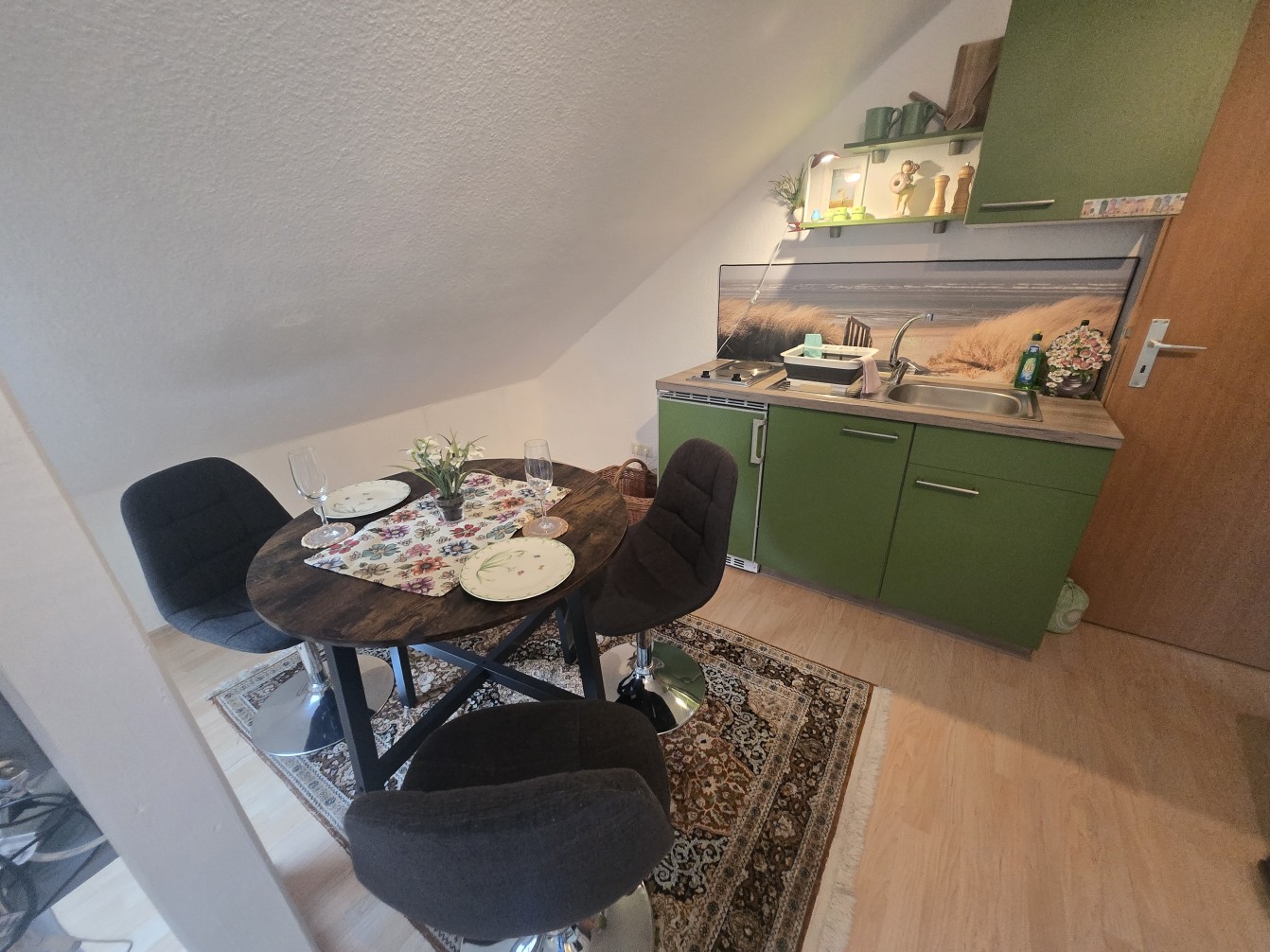 Starten Sie Ihren Tag auf der eigenen Terrasse, atmen Sie die frische Ostseeluft ein und genießen Sie die Stille – fernab von Trubel und Hektik. Die Wohnung bietet alles, was Sie für einen entspannten Urlaub brauchen: ein gemütliches Wohnzimmer mit Flachbild-TV, eine vollausgestattete Küchenzeile mit Kühlschrank und Mikrowelle, ein eigenes Badezimmer mit Dusche sowie bequeme Bettwäsche und Handtücher. WLAN und kostenfreie Parkplätze direkt vor der Unterkunft sind selbstverständlich inklusive. Die Wohnung befindet sich im ersten Stock des vom Vermieter im Erdgeschoss bewohnten Bungalows.